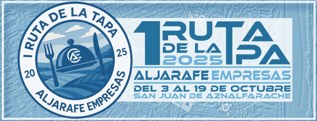 PARTICIPANTES INFORMACIÓN PREMIOS Llega la RUTA DE LA TAPA ALJARAFE EMPRESAS 2025 a San Juan de aznalfarache. Del 3 al 19 de octubre, los bares y restaurantes de San Juan de Aznalfarache ofrecerán una selección de deliciosas tapas a un precio de 3,50€ (la tapa tradicional, habitual de la carta), 4€ (la tapa de autor, especial para la Ruta). DISFRUTA DE LAS MEJORES TAPAS Y GANA GRANDES PREMIOS Con este “Tapaporte”, demás de probar las “Tapas de la Ruta” de cada establecimiento, podrás participar en el sorteo de 4 premios, con sesiones de Spa, menú degustación, gafas polarizadas, sesiones de fotos, peluquería, vales descuentos, productos de Cruzcampo… ¿CÓMO PUEDES PARTICIPAR? 1. Coge tu Tapaporte en cualquiera de los bares y restaurantes que participan (Puedes verlo en el interior o entrando en el QR del Tapaporte). 2. Prueba todas las tapas de cada local y no olvides que te pongan el sello en cada establecimiento para poder participar en los sorteos. 3. Al termino de la Ruta de la Tapa, para proceder a votar la tapa más popular y entrar en el sorteo de los premios a los clientes participantes, los Tapaportes se entregarán en cualquiera de las urnas habilitadas en el Ayuntamiento, Biblioteca y Polideportivo. Ya sólo quedaría esperar si eres uno de los premiados cerca del teléfono para que contactemos contigo y darte tus regalos en la entrega de premios. ¡MUCHA SUERTE! Llega la RUTA DE LA TAPA ALJARAFE EMPRESAS 2025 a San Juan de aznalfarache. Del 3 al 19 de octubre, los bares y restaurantes de San Juan de Aznalfarache ofrecerán una selección de deliciosas tapas a un precio de 3,50€ (la tapa tradicional, habitual de la carta), 4€ (la tapa de autor, especial para la Ruta). DISFRUTA DE LAS MEJORES TAPAS Y GANA GRANDES PREMIOS Con este “Tapaporte”, demás de probar las “Tapas de la Ruta” de cada establecimiento, podrás participar en el sorteo de 4 premios, con sesiones de Spa, menú degustación, gafas polarizadas, sesiones de fotos, peluquería, vales descuentos, productos de Cruzcampo… ¿CÓMO PUEDES PARTICIPAR? 1. Coge tu Tapaporte en cualquiera de los bares y restaurantes que participan (Puedes verlo en el interior o entrando en el QR del Tapaporte). 2. Prueba todas las tapas de cada local y no olvides que te pongan el sello en cada establecimiento para poder participar en los sorteos. 3. Al termino de la Ruta de la Tapa, para proceder a votar la tapa más popular y entrar en el sorteo de los premios a los clientes participantes, los Tapaportes se entregarán en cualquiera de las urnas habilitadas en el Ayuntamiento, Biblioteca y Polideportivo. Ya sólo quedaría esperar si eres uno de los premiados cerca del teléfono para que contactemos contigo y darte tus regalos en la entrega de premios. ¡MUCHA SUERTE! I RUTA DE LA TAPA 2025ALJARAFE EMPRESAS DEL 3 AL 19 DE OCTUBRE Descubre las TAPAS DE AUTOR Y TRADICIONAL que nos ofrecerán los bares, restaurantes y cafeterías de San Juan de Aznalfarache, del 3 al 19 de octubre de 2025, en la I RUTA DE LA TAPA DE ALJARAFE EMPRESAS. ¿Le gustaría dar mayor visibilidad a su Empresa? Contacte con nosotros y consiga su Página de Empresa Instagram Facebook-f Twitter únete a aljarafe empresas